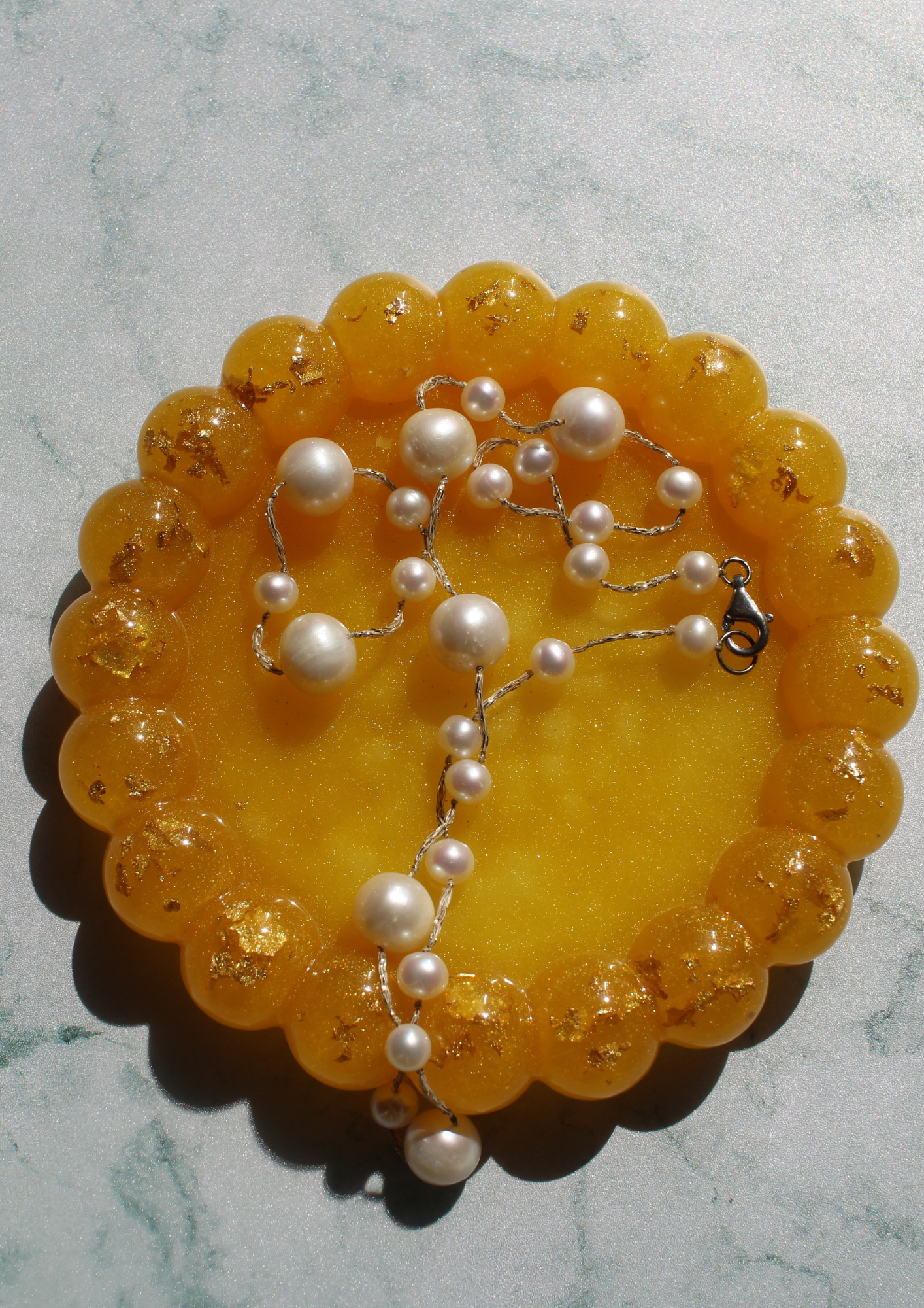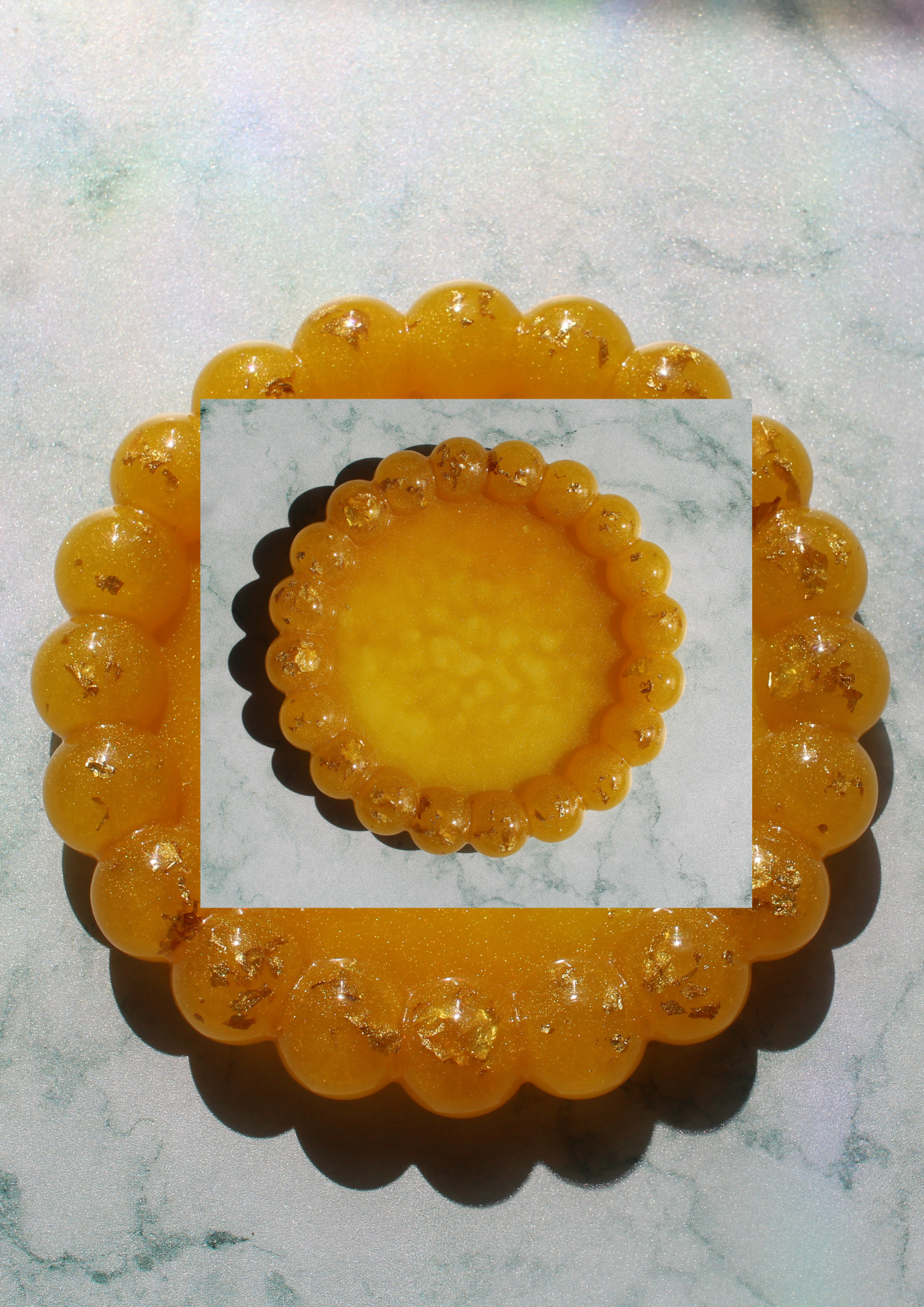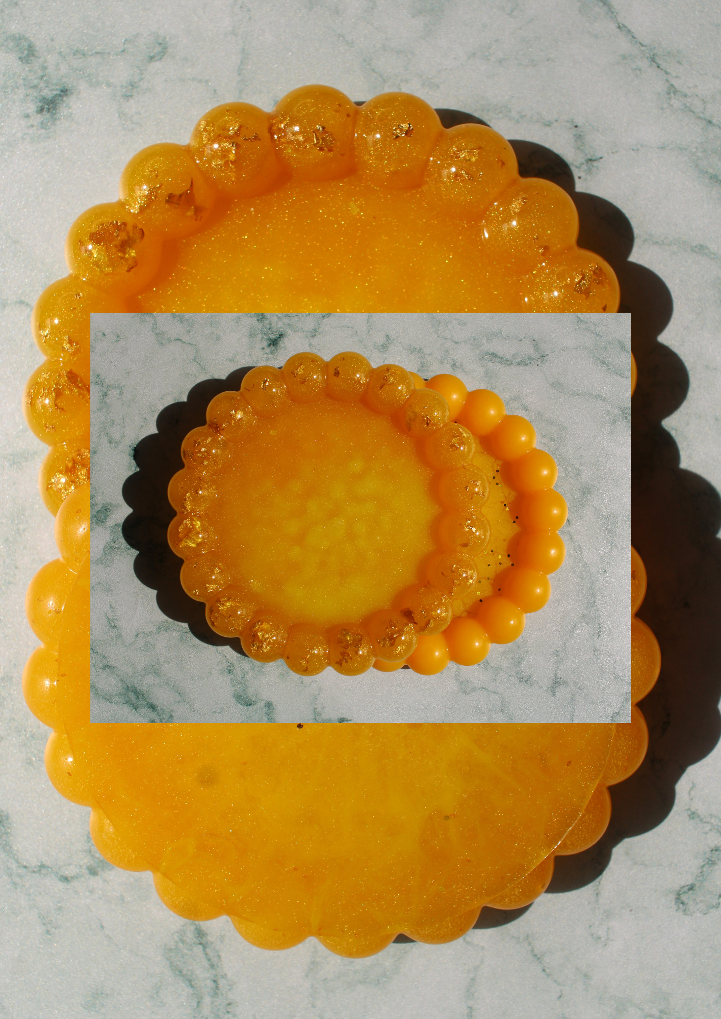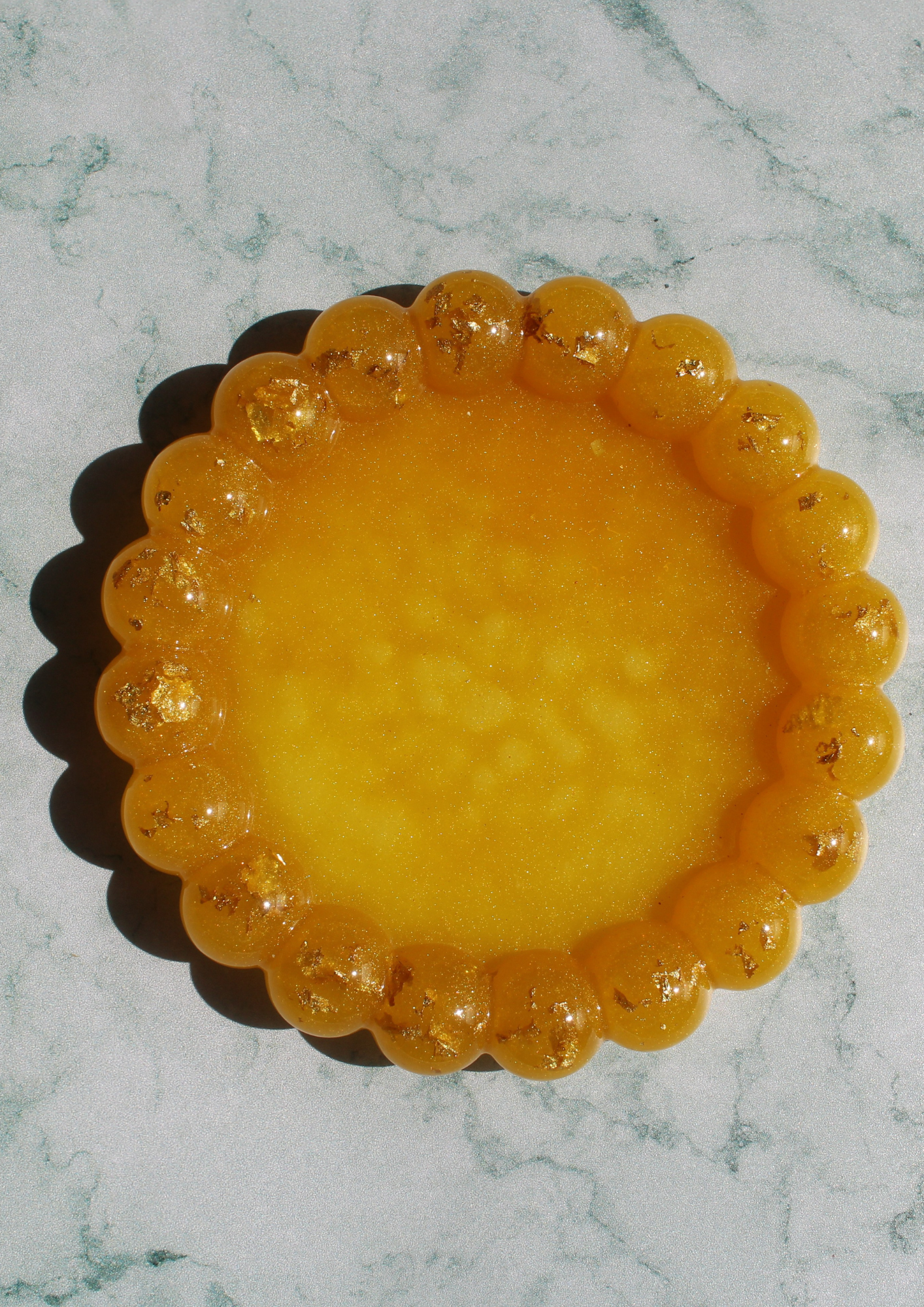 Golden Scallop Tray resin, latest products, Categories $15.00 Add to cart These options are not currently available. Would you like to be added to our waitlist? Description A handcrafted amber resin trinket dish with gold leaf accents. Perfect for storing jewelry while adding a warm, elegant glow to any space. Hand-poured resin Embedded gold leaf details Scalloped bubble-edge design Ideal for jewelry, keys, or small accessories Each piece is one of a kind 5/5 (1 Review)